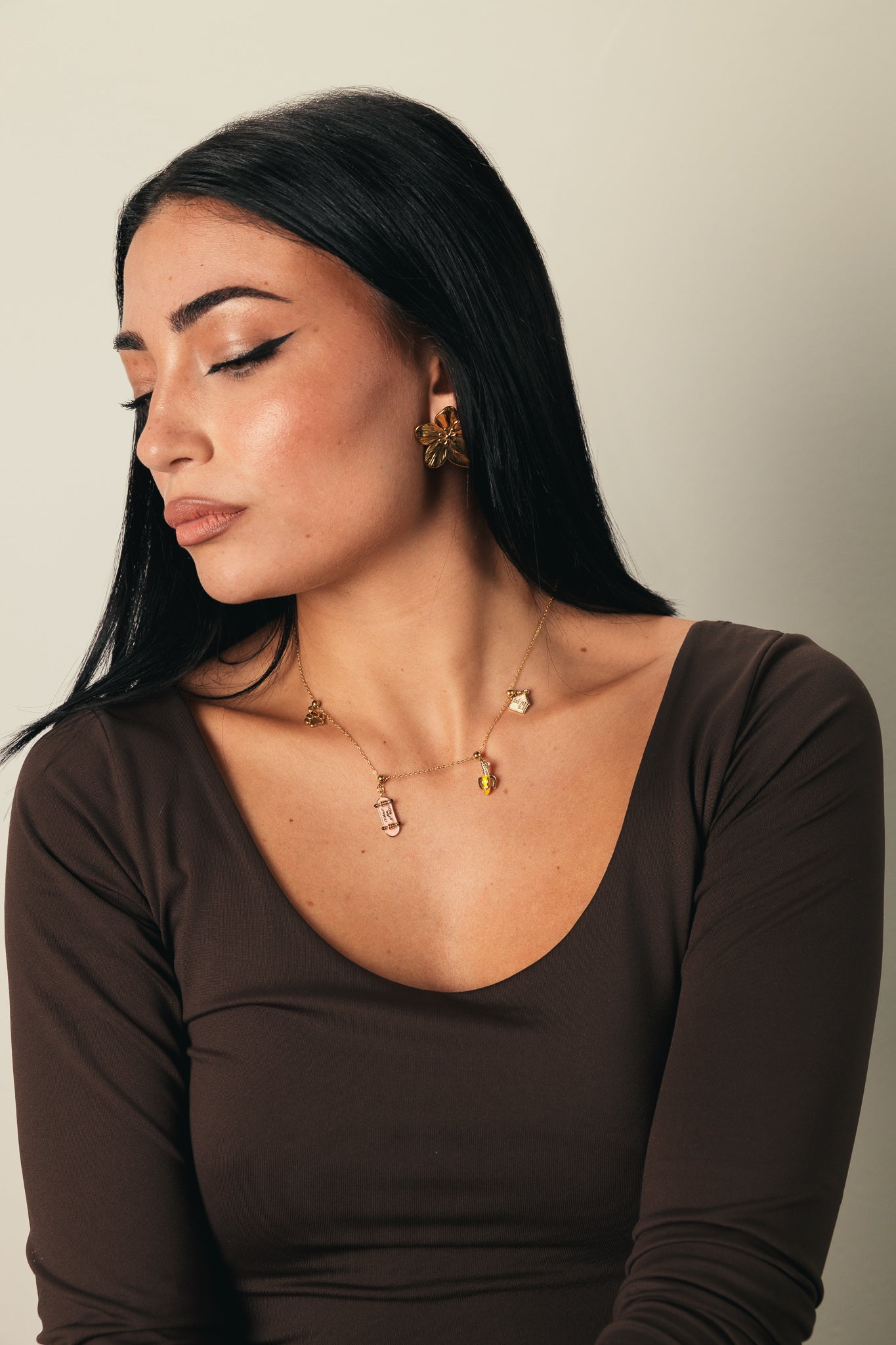 Charm in acciaio inossidabile 100%, resistenti all’acqua e nickel free, ideali per un uso quotidiano. Non scoloriscono, non si rovinano, delicati sulla pelle.