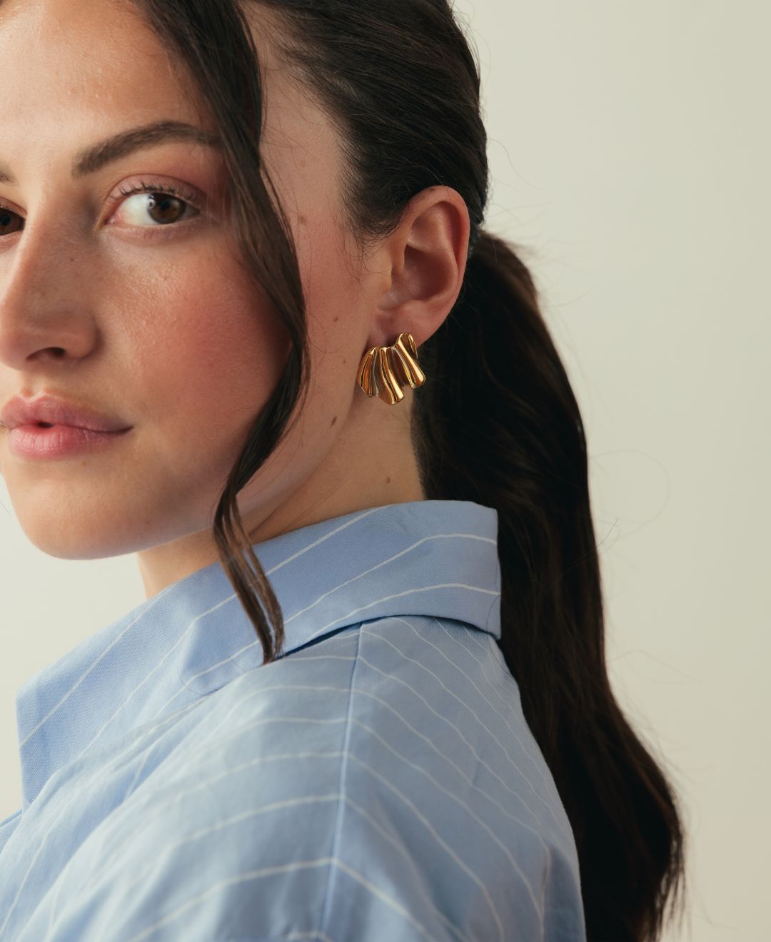 Linee morbide e ondulate che catturano la luce in modo unico. Sono perfetti per chi ama un design moderno ma delicato, con un movimento che rende l’orecchino particolare ma molto facile da portare. Leggeri e morbidi, perfetti per ogni giorno e ogni outfit.